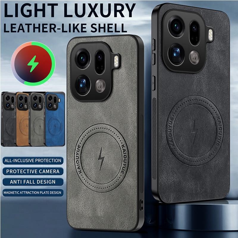 Kožený nárazuvzdorný obal na telefón pre OPPO Find X9 Pro pre kryt pre bezdrôtovú magnetickú nabíjačku Magsafe Realme 15T 15 Pro 5G mäkký nárazník