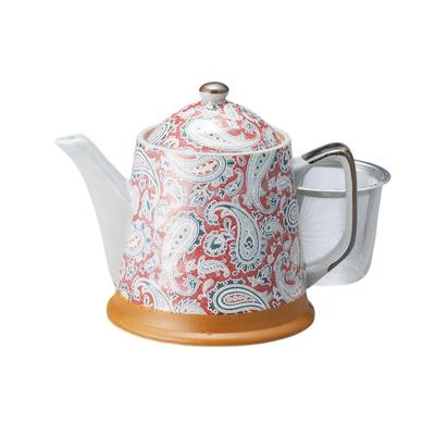 Ale-net Teapot (Stainless Steel with Strainer), 11 x 9.5 cm, 450cc, Arita Ware, Ancient Vermilion Flower Design with Basket Mesh, Porcelain, Made in