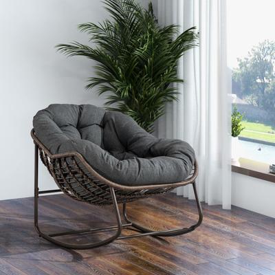 Fauteuil à bascule d'extérieur, fauteuil de loisirs contemporain adapté aux balcons, vérandas, jardins, terrasses, gris foncé