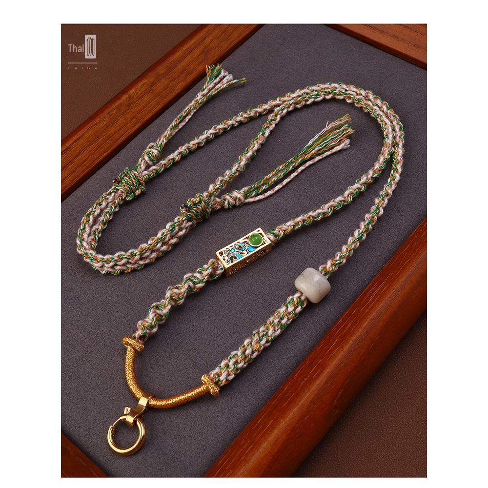 Handmade Hand-Rubbed Cotton Thangka Jade Pendant Necklace with Universal Buckle