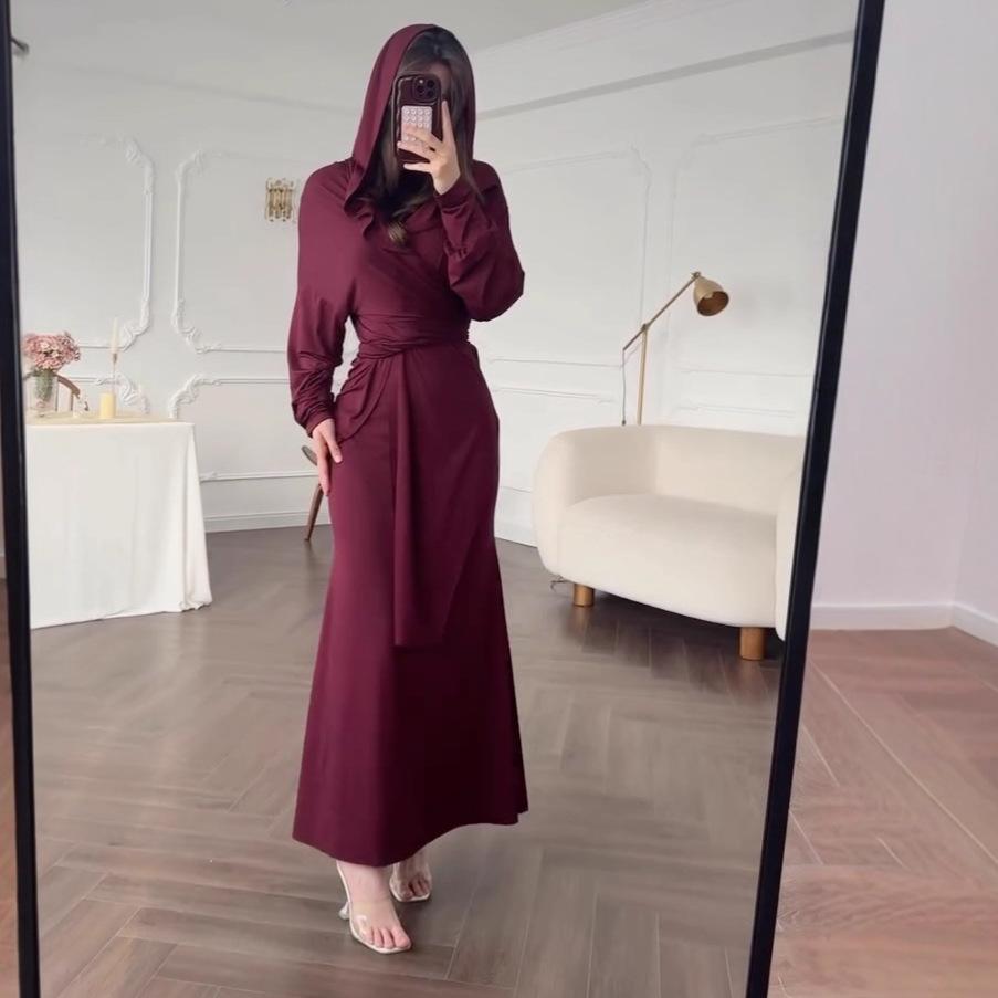 This elegant hijab dress is perfect for summer occasions, offering a sophisticated long sleeve design that provides both style and comfort. Made entirely from high-quality polyester, the dress is lightweight and breathable, ensuring you stay cool during warmer days. The stylish tie waist adds a flattering silhouette, while the cape provides an extra layer of grace and modesty. Ideal for those who appreciate a blend of contemporary fashion with traditional elegance.