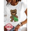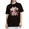 Ladies' casual short sleeved round neck T-shirt - cute cartoon bear pattern printed fashionable