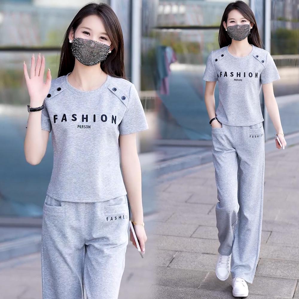 Youthful Summer 2025 Loose Round Neck Short Sleeve Top & Straight Leg Pants Set - Fashionable Sportswear for Versatile, Age-Reducing Style