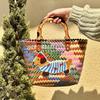 Cartoon KT Cat Rattan Beach Bag: Women's Summer Handheld Woven Basket for Seaside Holiday Commute