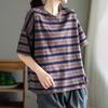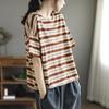 T-shirt for Women Summer Large Size Cotton T-shirt Soft Loose Printed Casual Striped Pullover T-shirt Top
