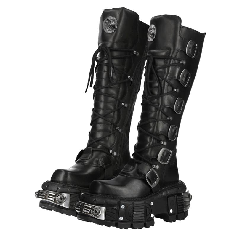 Kovová pracka Štvorcová špička Kolenné vysoké čižmy Dámske Čierna PU koža Punkové dlhé čižmy Žena Jeseň 2024 Hrubé podpätky Motorkárske členkové čižmy