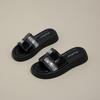 Thick-bottomed outer wear color matching one-word slippers women's spring and summer 2025 new super fire fashion rhinestone seaside beach mop