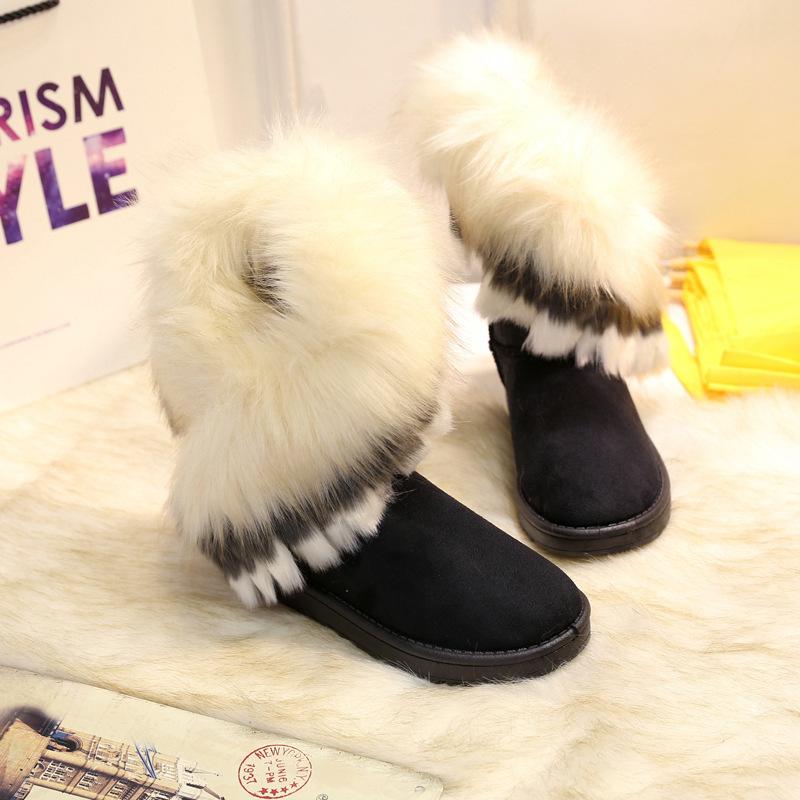 Nové nadrozmerné snehule z líščej kožušiny, dámske bavlnené čižmy s králičou kožušinou, módne vysoké s brmbolcami, vodoodolné
