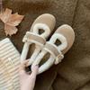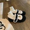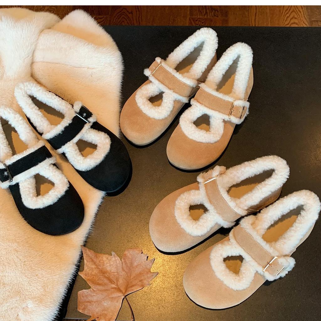Cowhide~ grape ma same round head with small low heel light mouth cotton shoes fluffy and velvet Mary Jane shoes women's winter