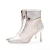 Korean version breathable mesh fine heel cool boots women's spring and autumn 2025 anti-collision pointed short boots patent leather hollow high h
