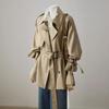 Európsky a Americký Dámsky Ležérny Trenčkot s Dvojradovým Zapínaním a Opaskom Krátka Bunda