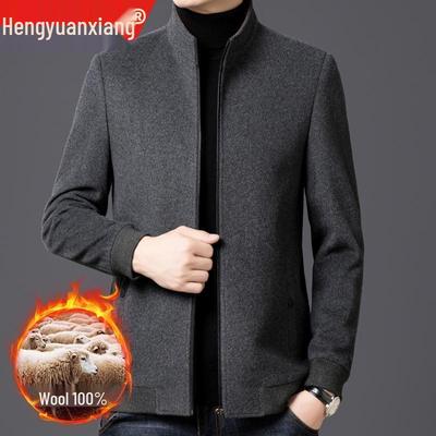 Hengyuanxiang Men's Short Double-faced Wool Coat with Removable Down Liner