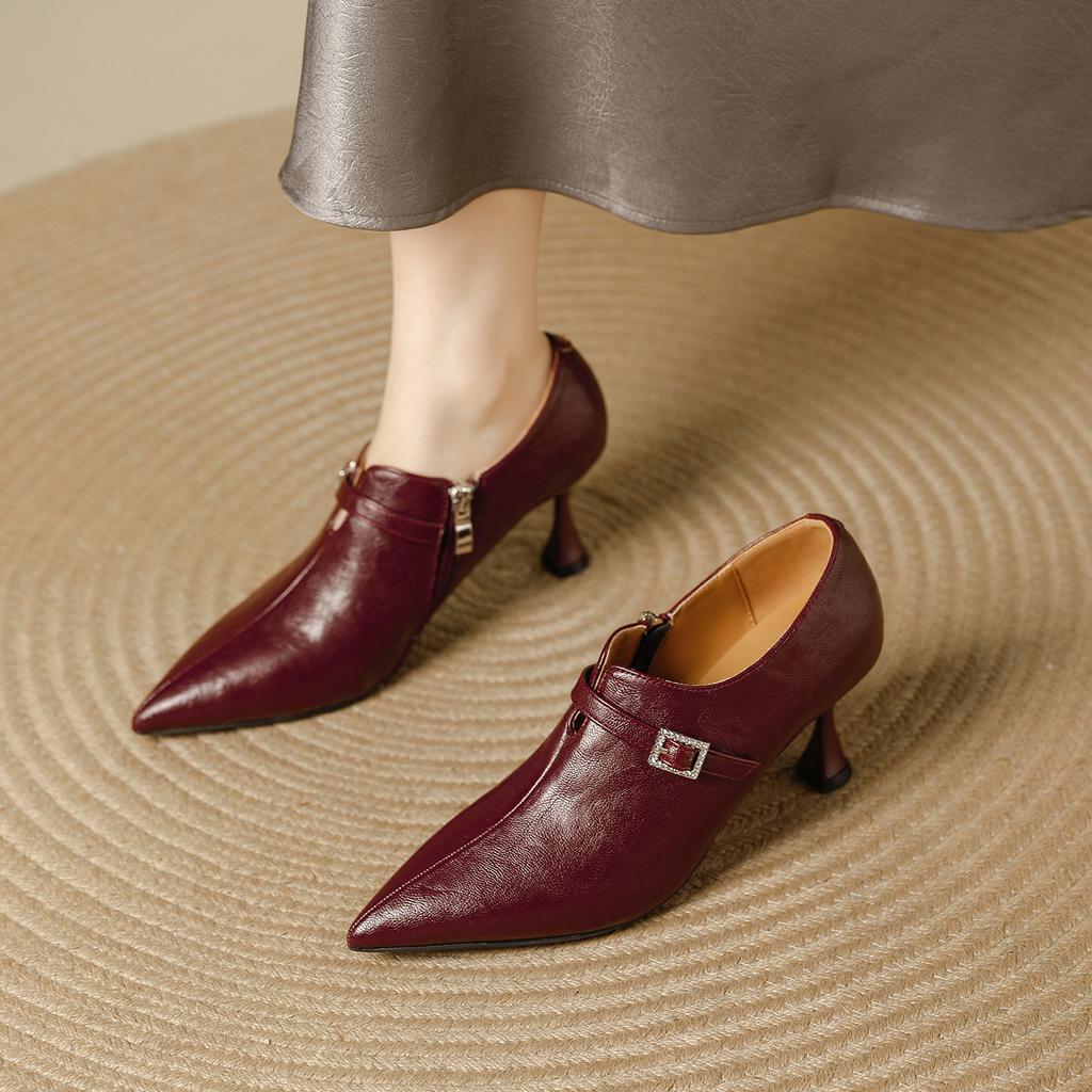 Pointed temperament elegant not tired feet high heels women's skirt side zipper belt buckle stiletto single shoes 2025 new