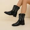 Spring and Fall New Style Fashion Pointy Solid Color Women's Mid-calf Boot with Mid-heel Sleeves Embroidered Western Cowboy Boot