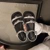 Black Xiaoxiangfeng Flat-soled Sandals Women's 2025 Summer Outer Wear French Style with Skirt High-end Fairy Shoes