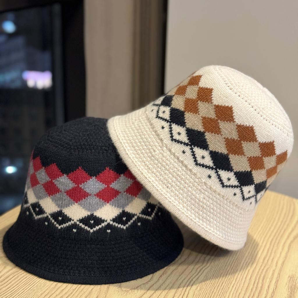 Autumn and Winter New Retro British Plaid Warm Woolen Fisherman Hat Women's Basin Hat Fashionable and Versatile Elegant Temperament Hat