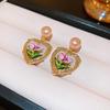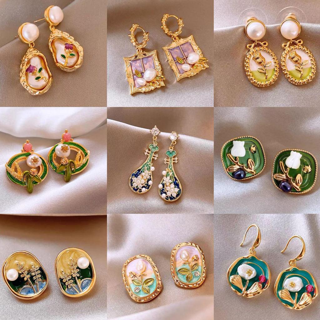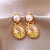 Gold Plated Pearl Flower Stud Earrings - Retro Court Style, Light Luxury, High-End Niche Design for Women