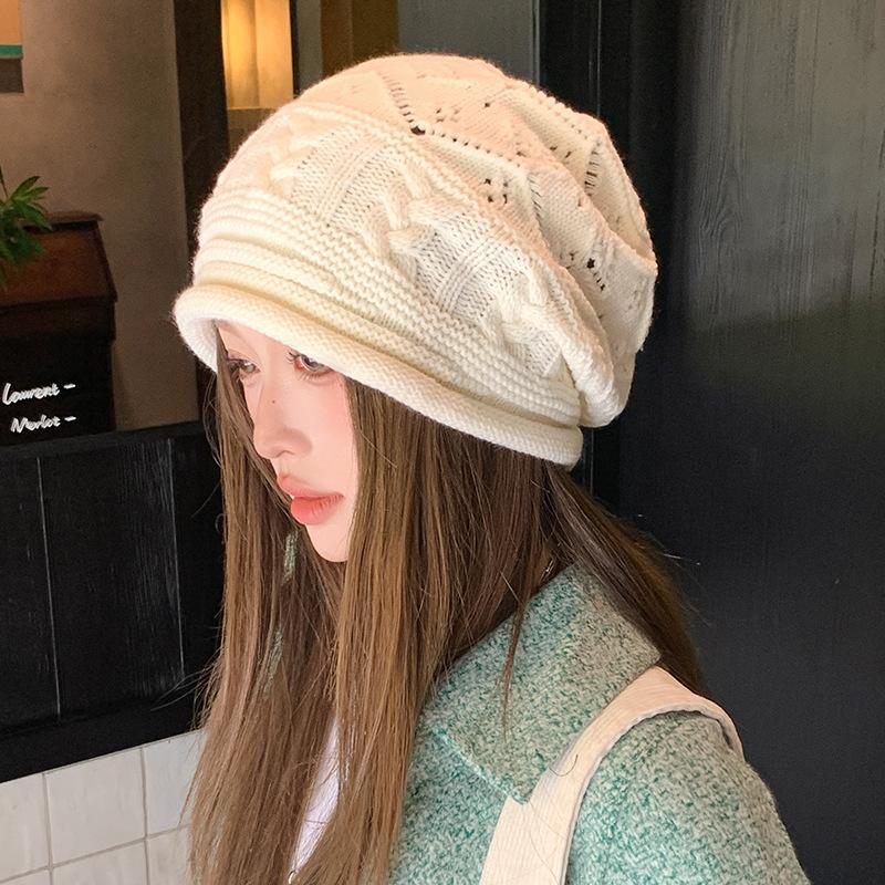 Curled Baotou Knitted Hat Women's Autumn and Winter Large Head Circumference Warmth Ear Protection Pile Hat Face Revealing Small Woolen Hat