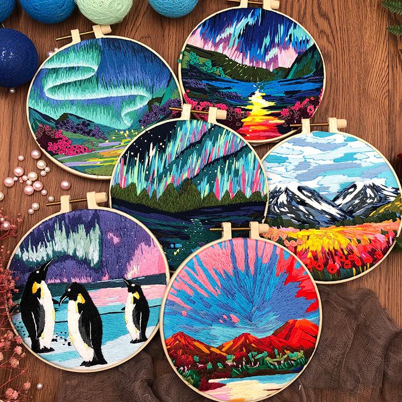 1 PC Landscape Oil Painting Pattern Embroidery DIY Fabric Craft Set with Tools