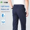 Experience ultimate comfort and style with Shanshan Men's Straight-Leg Casual Pants. Crafted from a premium blend of polyester, viscose, linen, mulberry silk, and spandex, these lightweight pants offer exceptional smoothness, breathability, and a skin-friendly feel. Designed for spring and summer, their comfortable straight-leg fit and subtle elasticity make them ideal for both daily wear and business casual settings. Featuring a classic solid color and a zipper fly, they embody a simple yet sophisticated commuting style, perfect for the modern man.