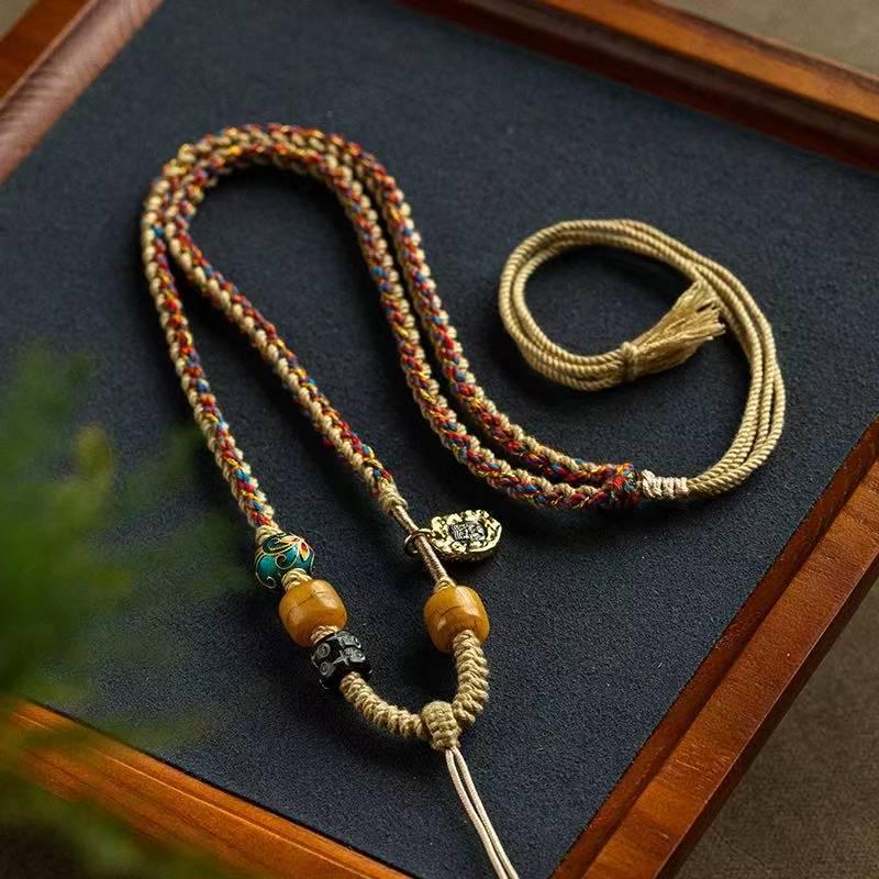 Tibetan Cross Dzi Thangka Gold Pendant Necklace Rope