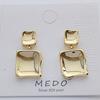 Prehraničné náušnice Strieborná ihla pre ženy - Skutočná zlatá farba, Geometrické okrúhle, štvorcové a oválne tvary, Hladký zliatinový dizajn.