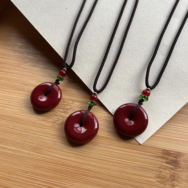 Imperial Purple Peace Buckle Cinnabar Necklace, Unisex Guardian God Pendant