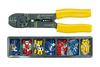 Set contents: Crimping pliers, Bullet terminal set (10 sets), Flat terminal set (10 sets), 8mm round terminals (5 sets), 6mm quad terminals (5 sets), Open-end bare terminals (R1.25-3, R2-4 3 each), Round bare terminals (Y1.25-3, Y2-4 3 each)