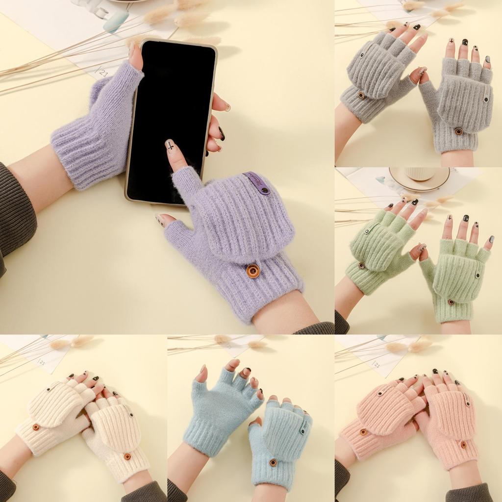 Zimné rukavice s polovičným prstom, teplé, pletené, plyšová priadza, na vonkajšiu cyklistiku