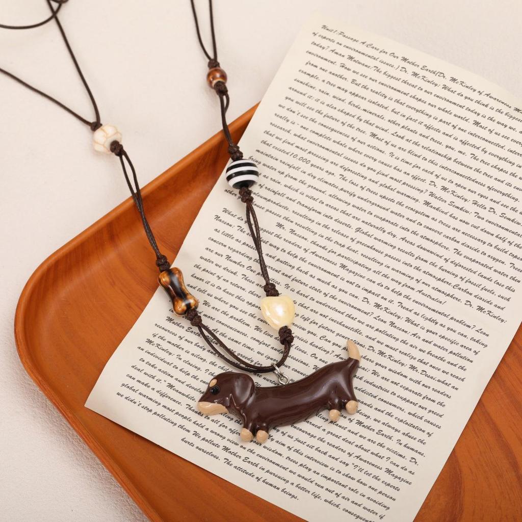 Retro Dachshund Ceramic Necklace Lanyard - Cute Cartoon Puppy Sweater Chain for Women