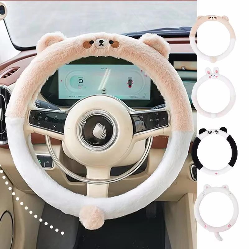 Panda Winter Cartoon Steering Wheel Set Interior Decoration Plush Embroidered Anti Slip Handlebar Gloves Cute Car Accessories