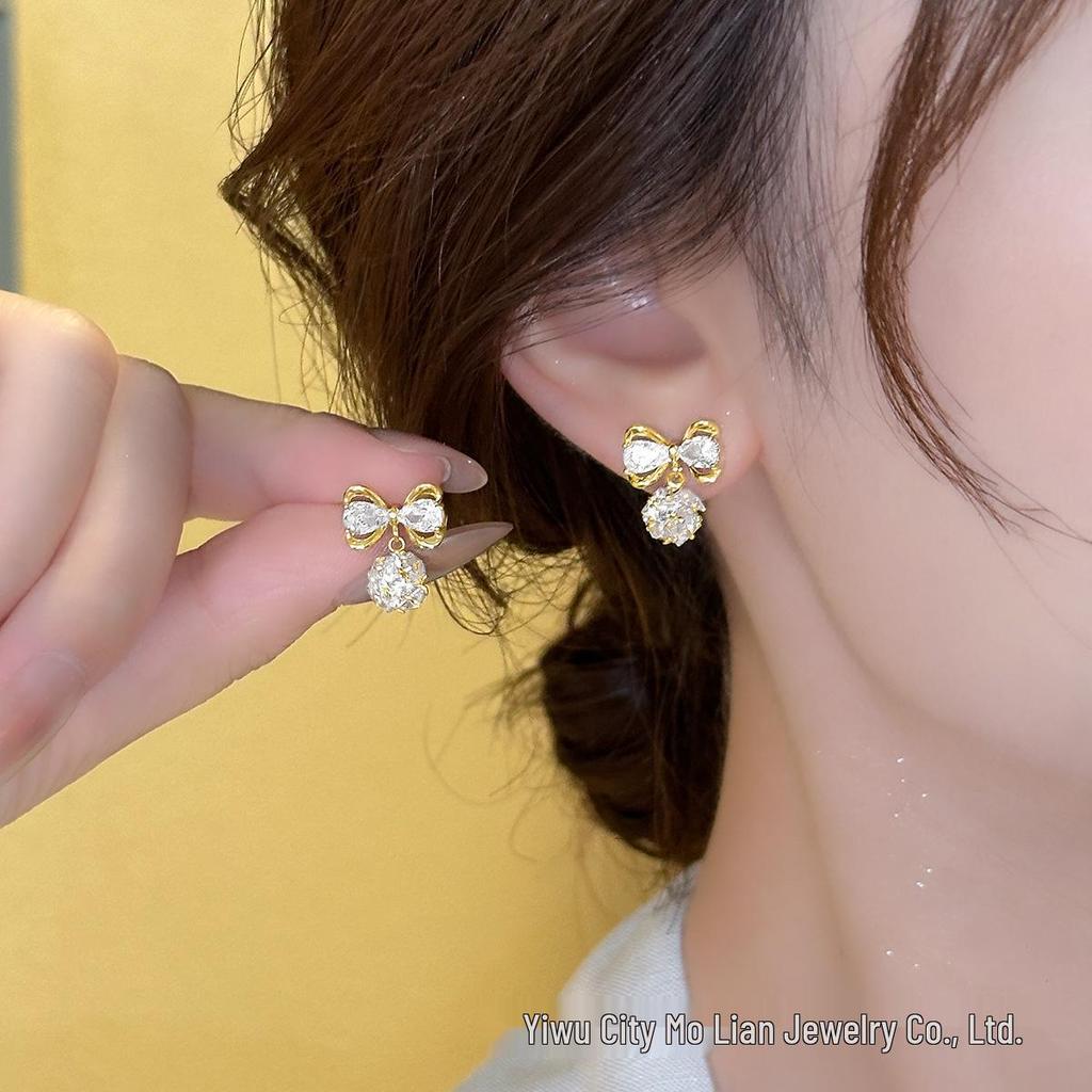 Exquisite Zircon Bow Pendant s925 Silver Stud Earrings for Women