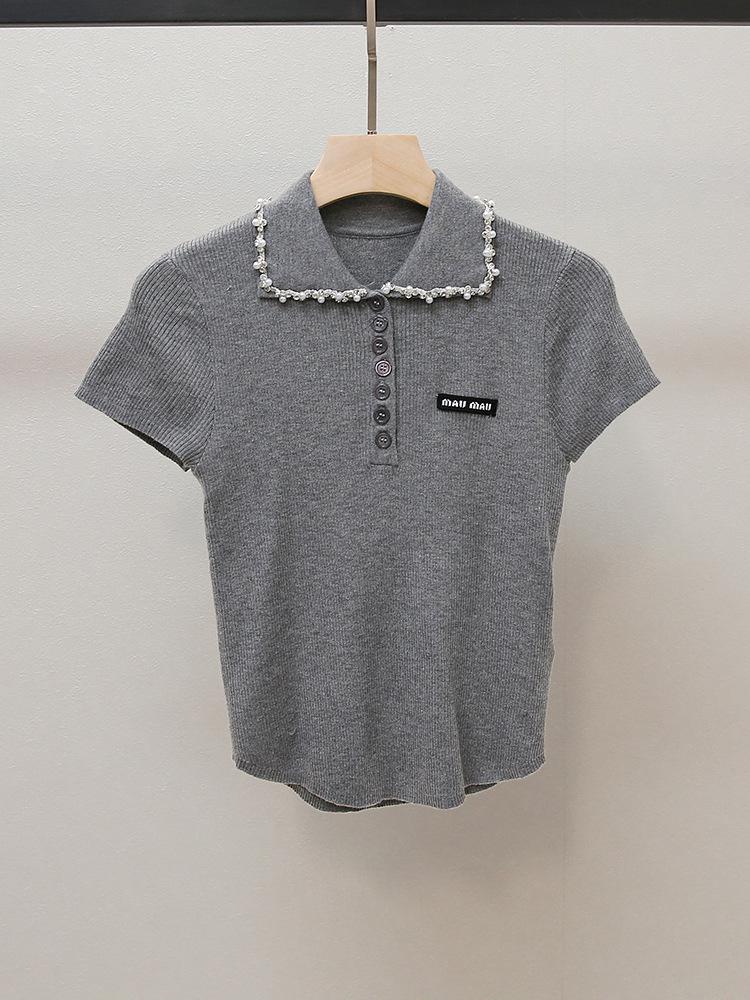 Nanyou Women's Autumn New Fragrant Style Beaded Turn-Down Collar Slim-Fit Knitted Sweater