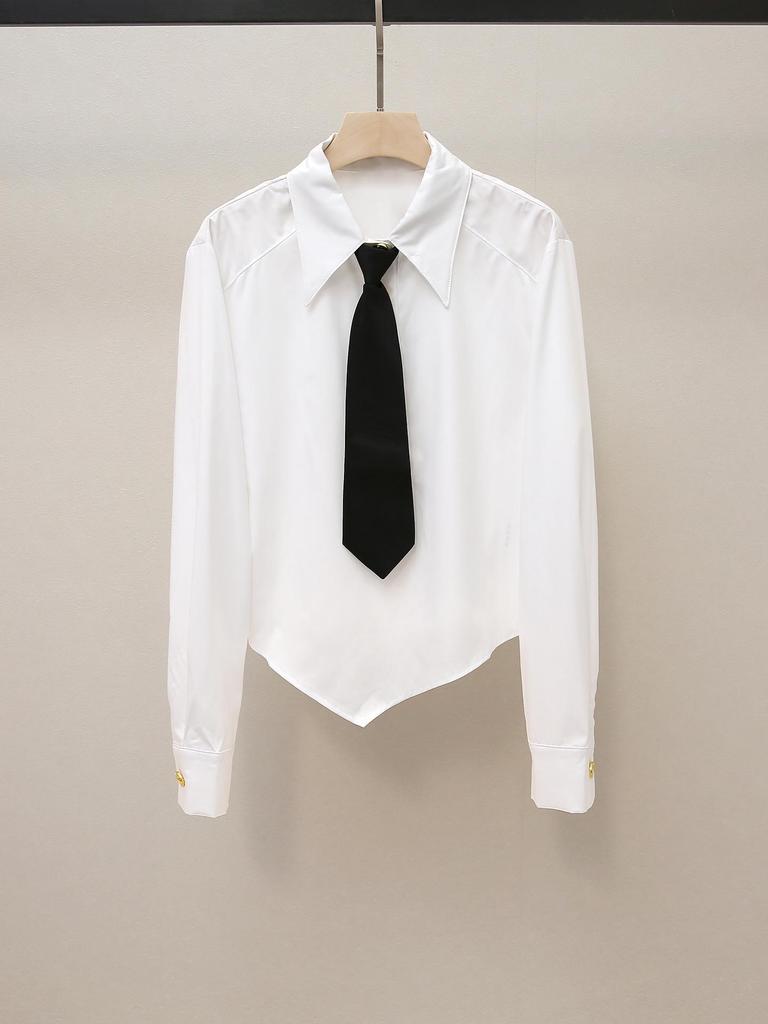 Autumn French Bow Tie Irregular Design Women's Versatile Shirt Top