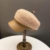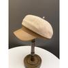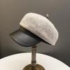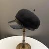 Simple PU Leather Brim Octagonal Hat Women's Autumn and Winter Woolen Peaked Cap Versatile Newsboy Hat