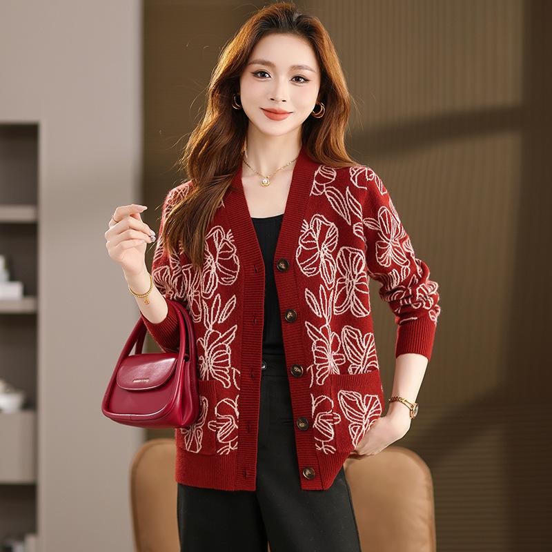 2025 Women's Spring & Autumn Jacquard Knit Cardigan: Casual Loose Sweater Coat