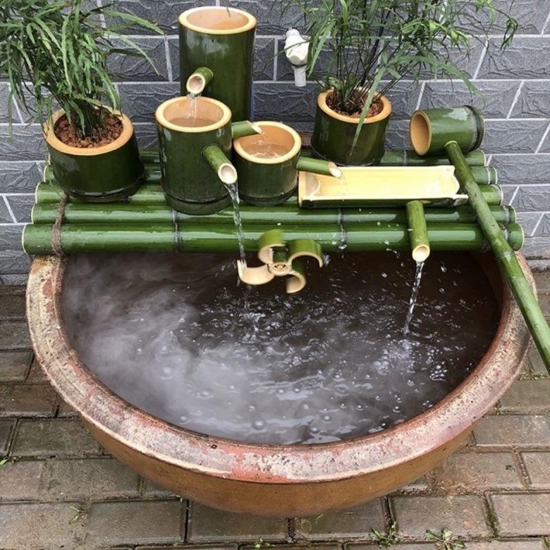 Bamboo-Finished Ceramic Fish Tank Fountain with Oxygenation & Humidification