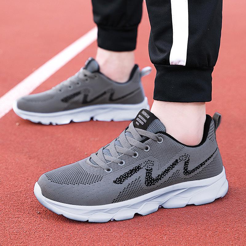 2021 new men's shoes low-top sports fly-woven four-season large-size solid-color sports shoes running breathable and casual