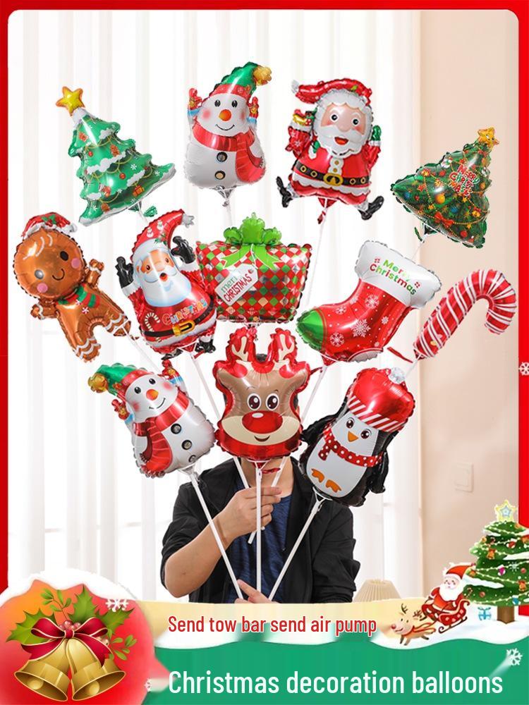 Santa Claus Christmas Decoration Balloons with Sticks and Small Gift Headbands for Kindergarten and Mall Scenes
