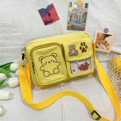 New Japanese soft girl cute small bag vintage girl student bag embroidered bear canvas bag female messenger bag
