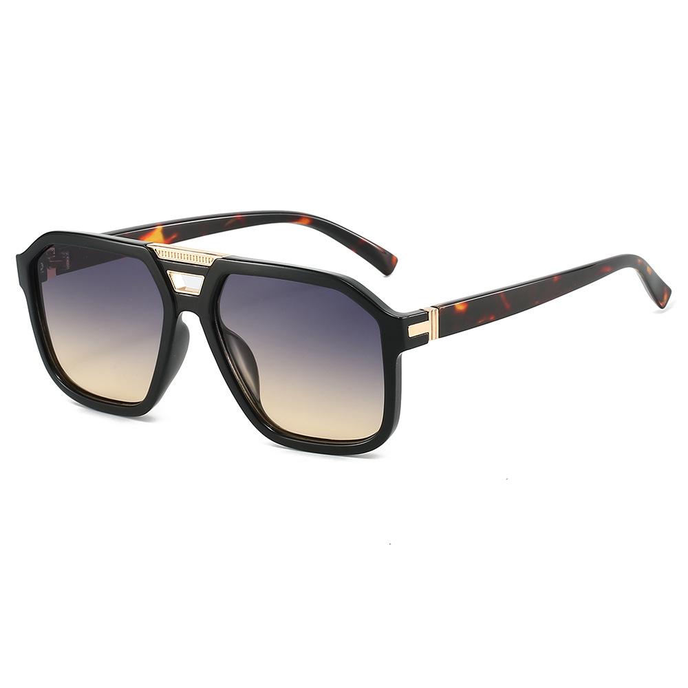 Retro Double Beam Leopard Print Gradient Women Sunglasses Brand Contrast Color Irregular Frame Design Men Casual Glasses Uv400