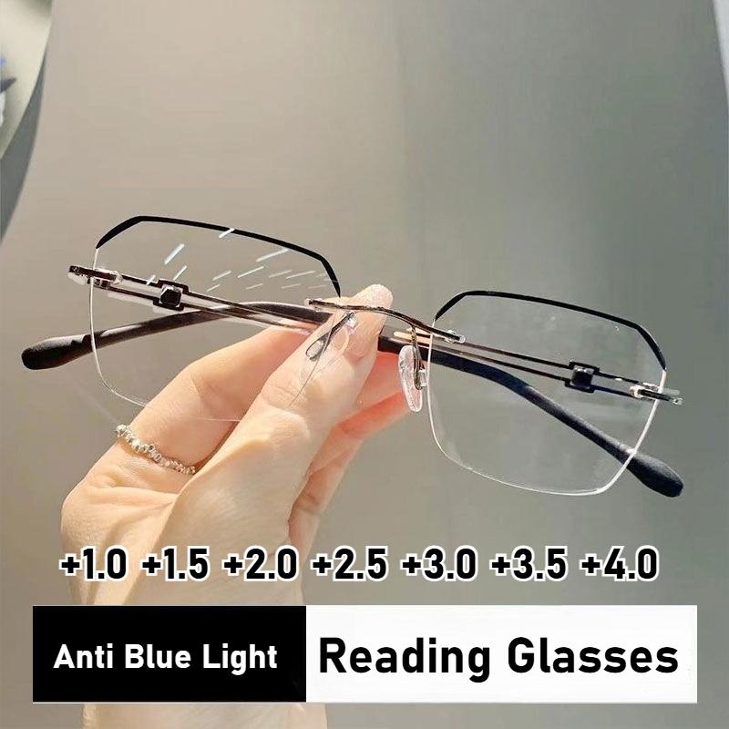 Neutral Fashion Polygonal Rimless Farsighted Glasses Luxury High-Definition Anti-Blue Light Glasses Business Reading Glasses