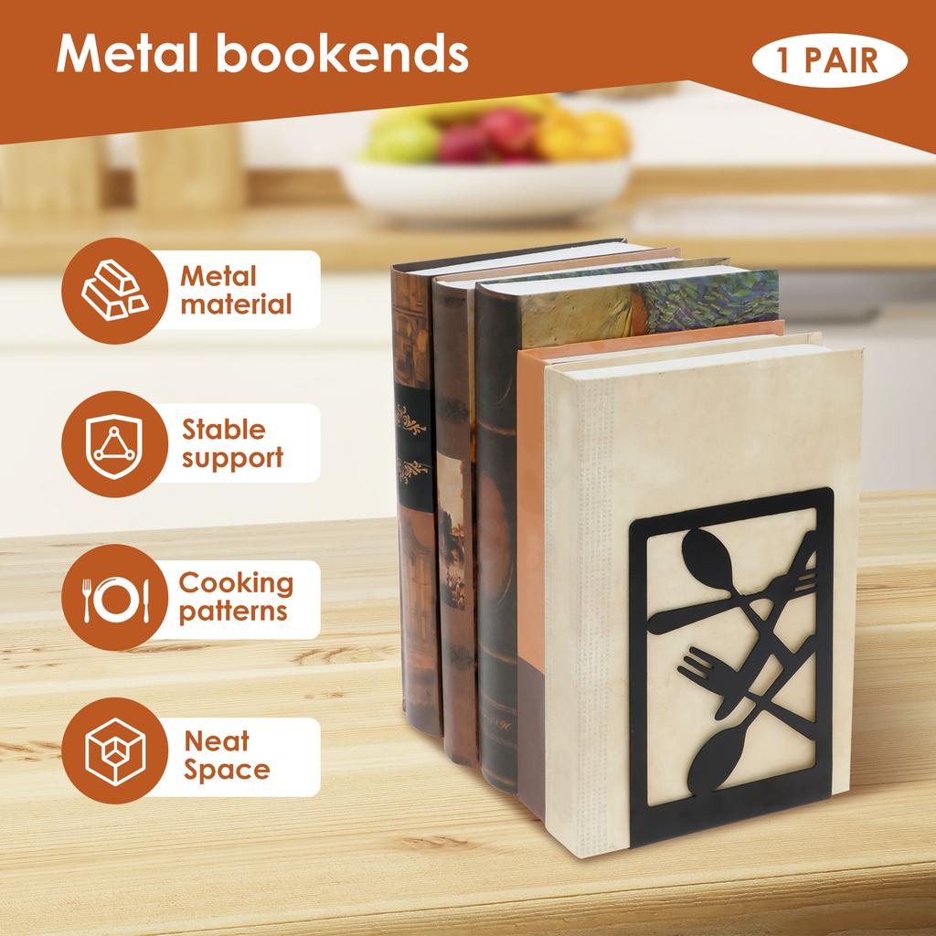 2Pcs Book Ends Creative Metal Bookends Decorative Heavy Book Ends for Shelves Multifunctional Cookbook Bookends for Home Kitchen