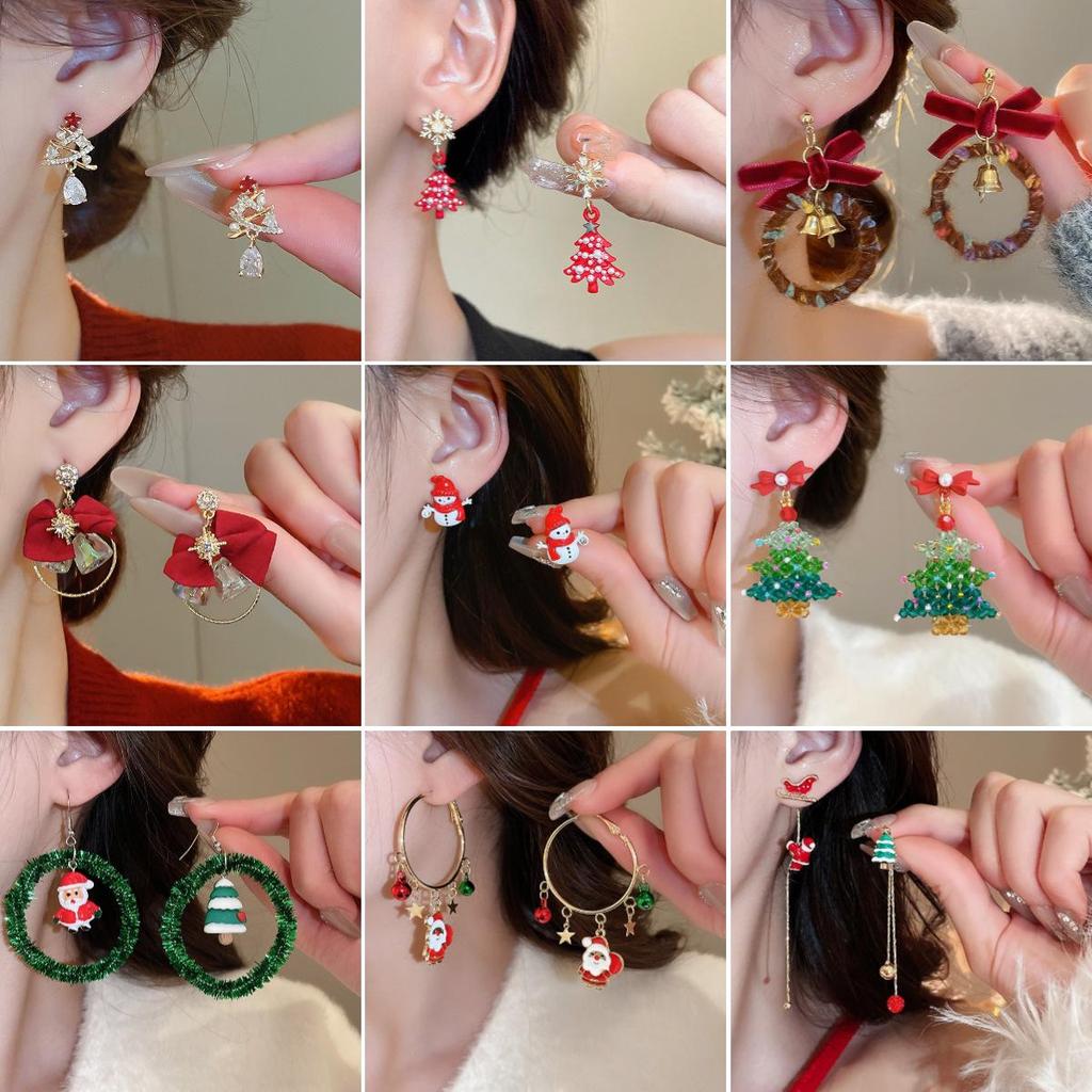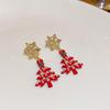 Festive Red Bow & Silver Needle Christmas Heart Hoop Earrings for Women