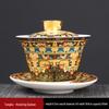 Large gilt covered bowl Chinese style enamel colored ceramic Sancai tea bowl Retro gilt silver palace style tea set