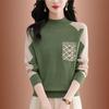 Women's Printed Sweater Autumn Winter Thick Soft Mock Turtleneck Sweater Color Block Loose Knit Pullover Top