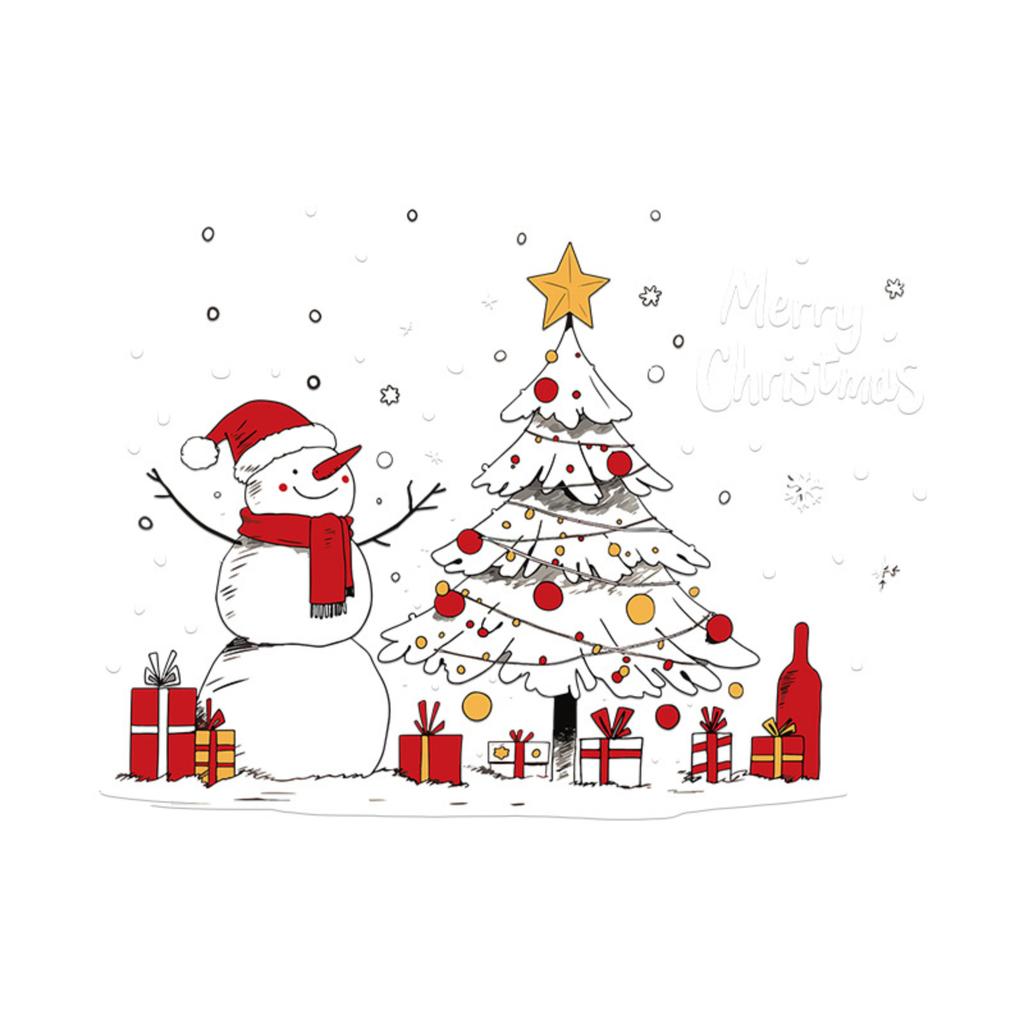 Christmas Decoration Scene, Christmas Snowman, Store Window Display, Window Sticker, Static Sticker, Glass Door, Christmas Tree