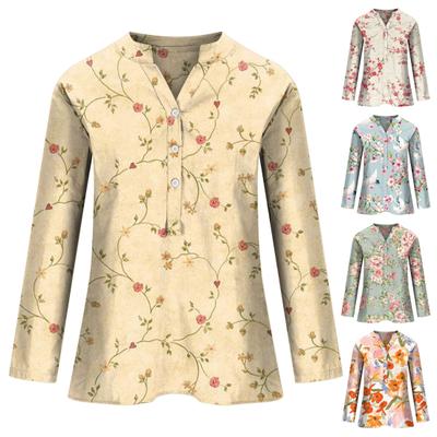 Tops Shirt Women Vintage Floral Print V Neck Tunic Tops Blouse Clothing Gift