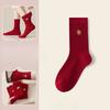 Red Socks, Cotton Socks, Men's and Women's Mid-calf Socks, Solid-color Sweat-absorbing and Odor-proof Wedding Socks for Autumn and Winter