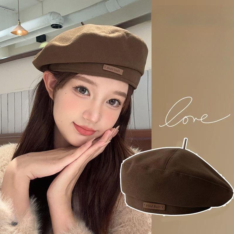 1Pc Beret Female Autumn and Winter Japanese Retro Versatile Letter Face Small Octagonal Hat Small Fragrant Pumpkin Hat